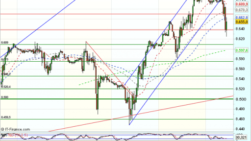 El Ibex 35 se encuentra volátil en la sesión de hoy, atacando la resistencia de los 8.700 puntos, muy cerca ya del techo del rango lateral que lo limita durante el año y cotiza con perdidas del 0,27%, hasta los 8.647,50 puntos.