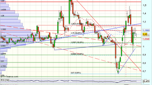 Tras una violenta consolidación vuelve a impulsarse en los 0,75 hasta los 1,36, que dan paso a otro impulso bajista, derivando en un rango lateral, con base en el soporte de 1 euro, que rompe a la baja,