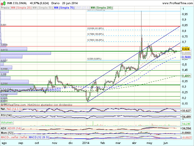 En el largo plazo, Inmobiliaria Colonial mantenía una tendencia fuertemente bajista, hasta estabilizarse en los 0,15 euros, que fuerzan un importante movimiento alcista hasta los 0,51 euros.