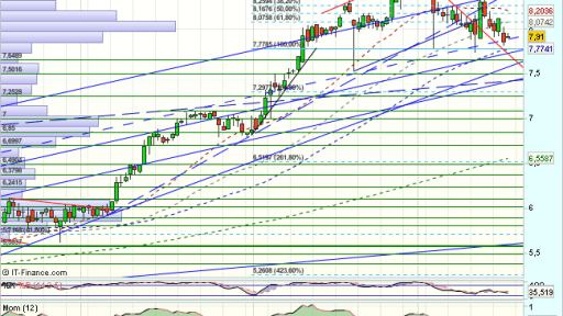 En el corto plazo, encuentra obstáculos en los 8,55 euros, iniciando una consolidación hacia los 7,8 euros, desde donde dibuja una formacion de tripe suelo, seguida de un rebote, en direccion a los ……….Sigue https://www.mercadosencontinuo.es/jazztel-analisis-tecnico-42.html