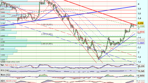 En el largo plazo, PHARMA MAR, tras una fuerte tendencia bajista, encontró suelo en los 1,23 euros, desde donde se impulsa, acelerando tendencia sucesivamente y con fuerza, superando resistencias y media de 200 sesiones tanto en diario como en semanal.