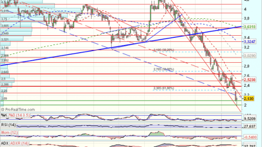 En el largo plazo, PHARMA MAR, tras una fuerte tendencia bajista, encontró suelo en los 1,23 euros, desde donde se impulsa, acelerando tendencia sucesivamente y con fuerza, superando resistencias y media de 200 sesiones tanto en diario como en semanal.