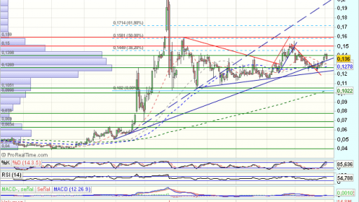 En las últimas sesiones, se apoya en los 0,11 euros, para un nuevo impulso alcista hasta los 0,152, que fuerzan un throwback a la directriz alcista de medio plazo, desde donde rebota hasta lo la resistencia en los 0,14 euros, que fuerza una consolidacion, con primeros objetivos en los……….Sigue en https://www.mercadosencontinuo.es/mapa
