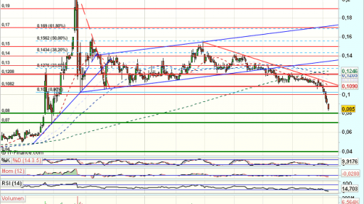 En el medio plazo, define el rango lateral como de agotamiento bajista, dando lugar a un fuerte impulso alcista, que supera la media de 200 sesiones, y encuentra obstáculos en los 0,21 euros, que fuerzan una consolidación.