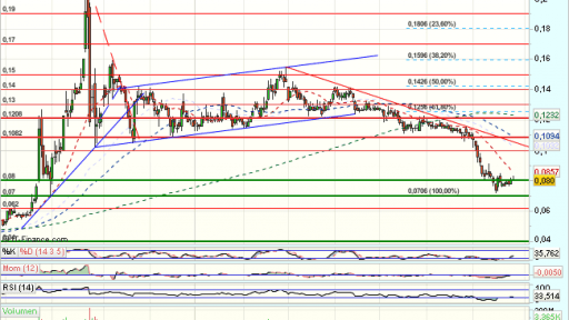 En las últimas sesiones, tras un intento de estabilizacion en los 0,12, que fuerzan un trhrowback a soportes en 0,07, desde donde rebota, con primeros objetivos en los……….Sigue en https://www.mercadosencontinuo.es/mapa