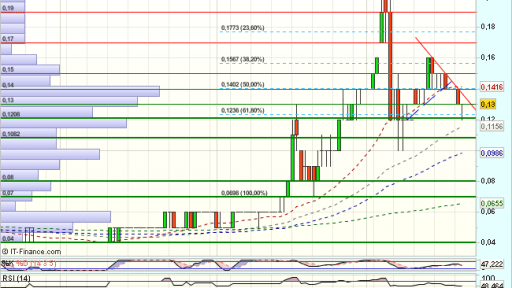 En el medio plazo, define el rango lateral como de agotamiento bajista, dando lugar a un fuerte impulso alcista, que supera la media de 200 sesiones, y encuentra obstáculos en los 0,21 euros, que fuerzan una consolidación