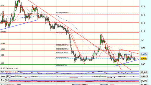En las últimas sesiones, se apoya en el soporte de los 0,07, desde donde rebota, en un pullback a resistencias en 0,088 euros, que fuerzan una consolidacion hasta los 0,072, desde donde rebota en un movimiento triangular, con primeros objetivos en los……….Sigue en https://www.mercadosencontinuo.es/mapa