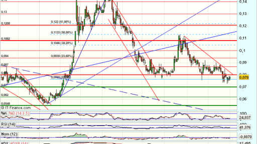 En el medio plazo, define el rango lateral como de agotamiento bajista, dando lugar a un fuerte impulso alcista, que supera la media de 200 sesiones, y encuentra obstáculos en los 0,21 euros, que fuerzan una consolidación.