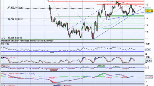 Partiendo del análisis del valor que nos puso ayer Lone, la vela del lunes y la que está formando hoy confirman la base del canal alcista a corto plazo al tiempo que rompe la dinámica que mantenía el precio y que, con indicadores que no eran favorables, parecía tender a la configuración de un HCH en el entorno del gap que nos dejó el valor en abril.