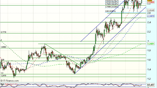 En el corto plazo, el encuentro con los 3 euros, inicia un impulso bajista, que encuentra apoyos en el soporte de los 2,6 euros, para un nuevo impulso alcista, que en la sesión de hoy, a falta de confirmar al cierre, supera el 61,8% del impulso bajista previo, en dirección a los……….Sigue en https://www.mercadosencontinuo.es/sacyr-analisis-tecnico-23.html