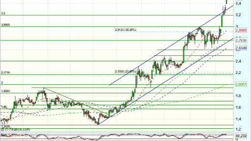 En el corto plazo, el encuentro con los 3 euros, fuerza una consolidación, que encuentra apoyos en el soporte de los 2,6 euros, para un nuevo impulso alcista, que en la sesión de hoy, a falta de confirmar al cierre, supera con fuerza y gap alcista, la resistencia relevante de los 3,5 euros y con ella el 50% de recuperación de todo el impulso bajista previo desde los 6 euros, abriendo nuevos objetivos naturales en los……….Sigue en https://www.mercadosencontinuo.es/sacyr-analisis-tecnico-25.html