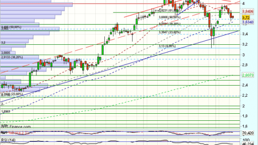 En el corto plazo, encuentra obstáculos en los 4,25 euros, que fuerzan una consolidación hasta los 3,13 euros, desde donde rebota con fuerza, superando el 61,8% de recuperación del impulso bajista previo, hasta agotarse ante los 4 euros, que fuerza un throwbak a soportes en los ……….Sigue https://www.mercadosencontinuo.es/sacyr-analisis-tecnico-34