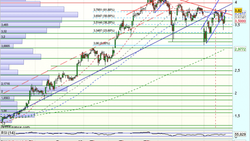 En el medio plazo, el impulso alcista, supera con fuerza el 61,8% de recuperación de todo el impulso bajista previo desde los 6 euros.