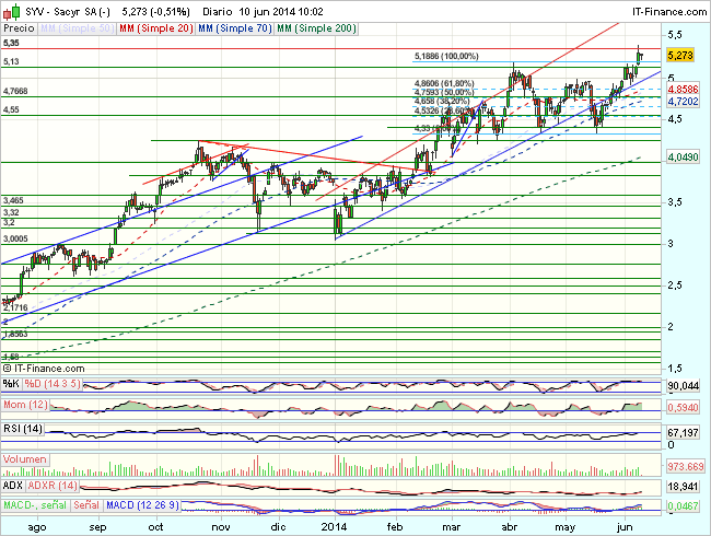 La tendencia de largo plazo de Sacyr Vallehermoso, sigue siendo muy bajista, aunque tras encontrar apoyos en el soporte relevante de los 1,3 euros, inicia un fuerte impulso alcista.