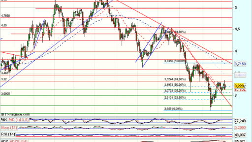 En el corto plazo,mantiene un impulso bajista, que se va acelerando hasta encontrar apoyoes en los 2,67, desde donde rebota en un pullback a resistencias, con primeros objetivos en los ……….Sigue en https://www.mercadosencontinuo.es/mapa