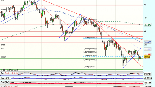 En el corto plazo,mantiene un impulso bajista, que se va acelerando hasta encontrar apoyoes en los 2,67, desde donde rebota en un pullback a resistencias en 3,3 euros, que fuerzan una consolidación, con primeros objetivos en los ……….Sigue en https://www.mercadosencontinuo.es/mapa