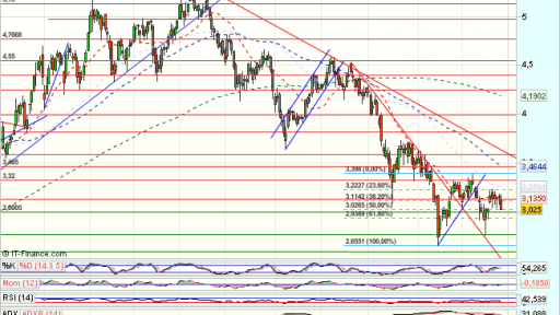 En el corto plazo,mantiene un impulso bajista, que se va acelerando hasta encontrar apoyoes en los 2,67, desde donde rebota en un pullback a resistencias en 3,3 euros, que fuerzan un trhrowback a soportes, con primeros objetivos en los ……….Sigue en https://www.mercadosencontinuo.es/mapa