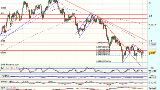 En el corto plazo,mantiene un impulso bajista, que se va acelerando hasta encontrar apoyos en los 2,67, desde donde rebota en un pullback a resistencias en 3,3 euros, que fuerzan un trhrowback a soportes, con primeros objetivos en los ……….Sigue en https://www.mercadosencontinuo.es/mapa