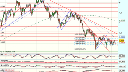 En el corto plazo,mantiene un impulso bajista, que se va acelerando hasta encontrar apoyos en los 2,67, desde donde rebota en un pullback a resistencias, con primeros objetivos en los ……….Sigue en https://www.mercadosencontinuo.es/mapa