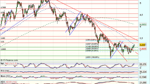 En el corto plazo,mantiene un impulso bajista, que se va acelerando hasta encontrar apoyos en los 2,67, desde donde rebota en un pullback a resistencias, con primeros objetivos en los ……….Sigue en https://www.mercadosencontinuo.es/mapa