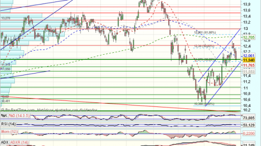 En el medio plazo, Telefónica tras un movimiento lateral, supera el techo del rango, definiéndolo como de agotamiento bajista, en un impulso alcista que le lleva hasta encontrar obstáculos en los 14 euros, que fuerzan una consolidación a soportes en 10,5 euros.