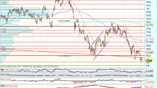 En el medio plazo, Telefónica tras un movimiento lateral, supera el techo del rango, definiéndolo como de agotamiento bajista, en un impulso alcista que le lleva hasta encontrar obstáculos en los 14 euros, que fuerzan una consolidación a soportes en 10,5 euros.