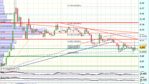 En el medio plazo, tras una consolidación lateral, encuentra soporte en los 0,095 euros, desde donde inicia un nuevo impulso al alza.