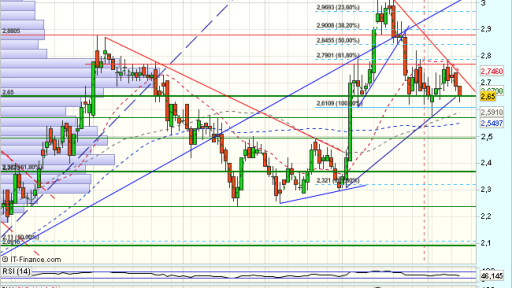 En el medio plazo, tras consolidar ante los 2,66, vuelve a encontrar apoyos en los 2,12 euros, para un nuevo impulso alcista que supera el 100% de recuperación del impulso bajista previo.