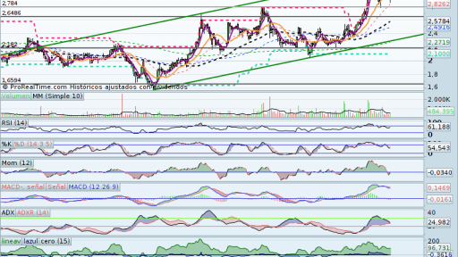 Adrian_gciaMiembroTras resultados, y al decir que me mejora en Europa y en Estados Unidos, está subiendo +4.12% a €12.89. Volvemos otra vez a la zona de los tres euros en donde hemos tenido muestras de interés vendedor desde noviembre del año pasado. El RSI vuelve acercarse a la directriz bajista desde los máximos de octubre y es necesario superarla para acumular fuerza contra la resistencia en precio comentada.