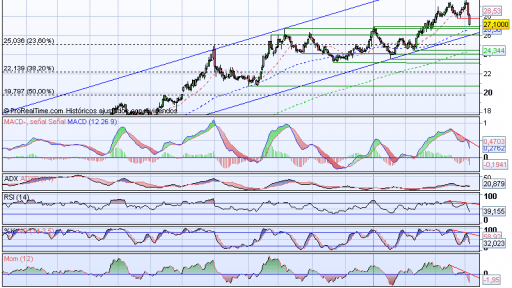 JOSE JUANMiembro JOSE JUANMiembro- – GRIFOLS: Renta 4 aconseja venta parcial con reentrada si rompe los 30 euros por acción - – DANONE : Goldman Sachs eleva el precio objetivo a 65 euros tras presentar resultados 16 abril, 2013 a las 14:10 en respuesta a: Deoleo se encomienda al idilio entre Hojiblanca y Carbonell para remontar en bol #19653 JOSE JUANMiembro JOSE JUANMiembro- Deoleo, compañía española dedicada a la venta de aceite embotellado, ha comunicado este martes que la operación de compra de Hojiblanca ya es firme, tras recibir la resolución del Ministerio de Economía y Competitividad que autoriza esta operación, según informó la compañía a la Comisión Nacional del Mercado de Valores (CNMV).  JOSE JUANMiembro JOSE JUANMiembro- – SANOFI: Morgan Stanley mejora el precio objetivo a 100 euros  JOSE JUANMiembro JOSE JUANMiembro- Corrección: El Ibex está antipático y sin ganas de celebraciones (había visto un 9 donde hay un 8, la vista cansada tiene esas cosas)  JOSE JUANMiembro JOSE JUANMiembro- – Nestle: Canaccord ha recortado su recomendación de comprar a mantener.  JOSE JUANMiembro JOSE JUANMiembro- Gracias Christian, como siempre, nos mantienes al día.  JOSE JUANMiembro JOSE JUANMiembro- – OHL: UBS mejora el precio objetivo de 27 a 28,2 euros y mantiene la recomendación de comprar - – ARCELORMITTAL: Credit Suisse recorta el precio objetivo de Arcelor de 23 a 17 euros y mantiene la recomendación en sobreponderar  JOSE JUANMiembro JOSE JUANMiembro- Felicidades Antonio. Que pases un gran día (hasta el Ibex te lo celebra abriendo con gap alcista. - Un fuerte abrazo. - Hago mío el presente de Crhistian. Por cierto ……. ¡ es verdad que en la mesa también hay cucuruchos !  JOSE JUANMiembro JOSE JUANMiembro- – SANTANDER: Mediobanca mantiene su recomendación de infraponderar con precio objetivo de 4,4 euros 5 abril, 2013 a las 21:46 en respuesta a: FCC aspira a hacerse con el mayor contrato de su historia por 2.700 millones #19286 JOSE JUANMiembro JOSE JUANMiembro- Falta le hace puesto que aunque no se está en situación técnica de caída libre, presenta actualmente precios de mediados de 1.997.  JOSE JUANMiembro JOSE JUANMiembro- En los 26,9 ya está practicamente Adrian. - Todos los indicadores daban divergencia bajista. - Presenta bastantes soportes y espero que se trate de una situación de mercado, pero desde una perspectiva muy pesimista, de los 23,13 que nos indica Antonio hasta los 20,72 no hay soportes (sólo el 38,2% de impulso) y de ahí a gap que se dejó en el 50% de impulso no hay mucho. - Adjuntos: JOSE JUANMiembro JOSE JUANMiembro- De nuevo con vosotros y ya que llego tarde te amplio los buenos deseos para todo el año Christian  JOSE JUANMiembro JOSE JUANMiembro- – E.ON: HSBC sube recomendación desde infraponderar a neutral  JOSE JUANMiembro JOSE JUANMiembro- – CAIXABANK: BoFAML recomienda infraponderar, con precio objetivo de 2,27 euros - – GDF SUEZ: HSBC mejora recomendación de infraponderar a sobreponderar  JOSE JUANMiembro JOSE JUANMiembro- – INDITEX: Société Générale baja precio objetivo a 131 euros y mantiene recomendación de comprar