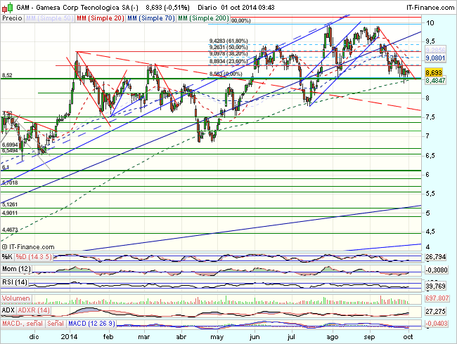 Javier Urones, de XTB, se decanta por Gamesa, una vez superada la resistencia clave de los 8,4 euros (que batió el jueves). «Superararla es una señal de fortaleza», la compañía podría avanzar un 44%, hasta los 12 euros.