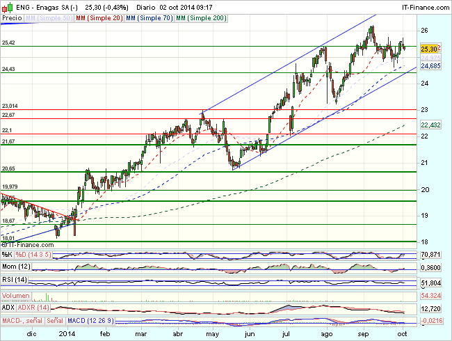 Enagás, con un potencial del 14%, también se sitúa entre las favoritas a medio plazo. La gasista sorprendió positivamente en sus resultados para el primer trimestre. El beneficio rozó los 100 millones de euros, un 5% más que en el mismo periodo de 2013.