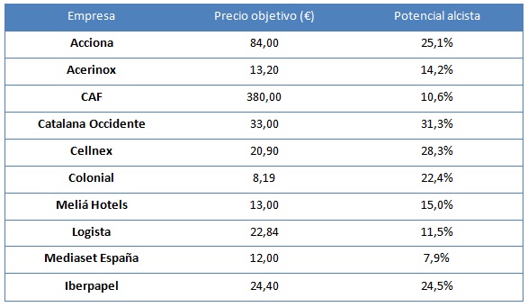 De acuerdo con las previsiones, en el Ibex se pueden encontrar valores con elevadas posibilidades de subir y entre ellas, hay que tener muy en cuenta las siguientes: