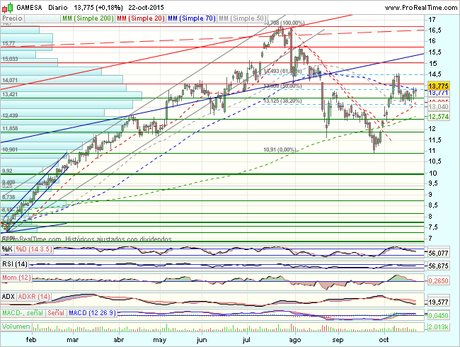 Notable ascenso acumula también Gamesa desde que empezó el año. La mayoría de los expertos que siguen al valor, un 50%, recomienda comprar, mientras que un 28% aconseja mantener acciones de la compañía y un 22% recomienda vender.(Ver analisis tecnico de Gamesa)