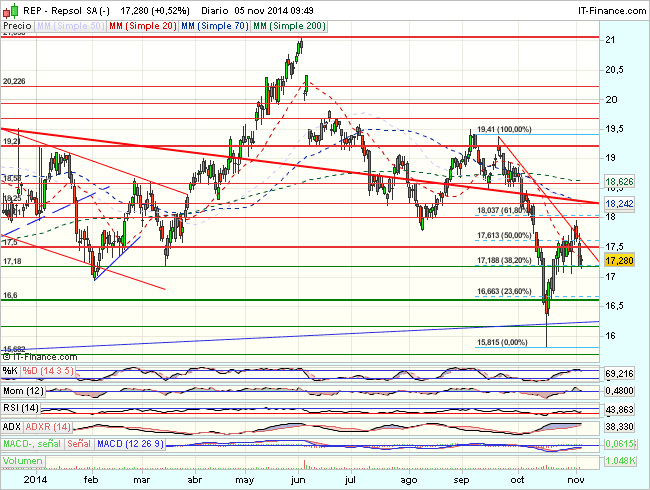 Desde el punto de vista técnico Mínguez explica que el valor trata de consolidar el nivel de los 17 euros, desde el que recuperar posiciones en este último tramo del año. El consenso le adjudica un potencial del 21,7%, hasta los 21 euros.