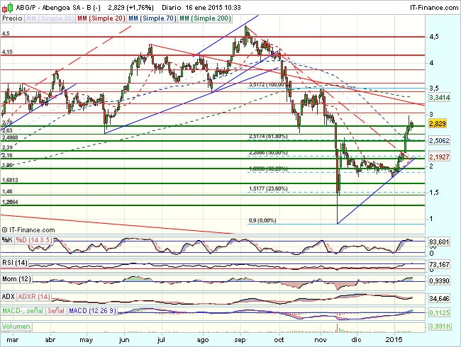 Abengoa. Otra de las compañías que podría vivir un rally es Abengoa. Sube con fuerza tras anunciar un acuerdo con el fondo EIG.