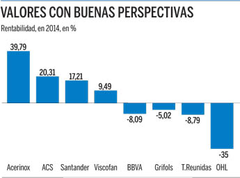 Tubos Reunidos. El fabricante de tubos de acero sin soldadura también se perfila entre los valores con más potencial tras cerrar 2014 en negativo (cayó un 2,72%). Tubos Reunidos se vio lastrada por unos resultados peores de lo esperado. «A partir de 2015 veremos los frutos de la estrategia de la compañía de irse posicionando como un productor de mayor valor añadido», señalan en una firma de análisis. Podría escalar un 67%, hasta los 2,71 euros.