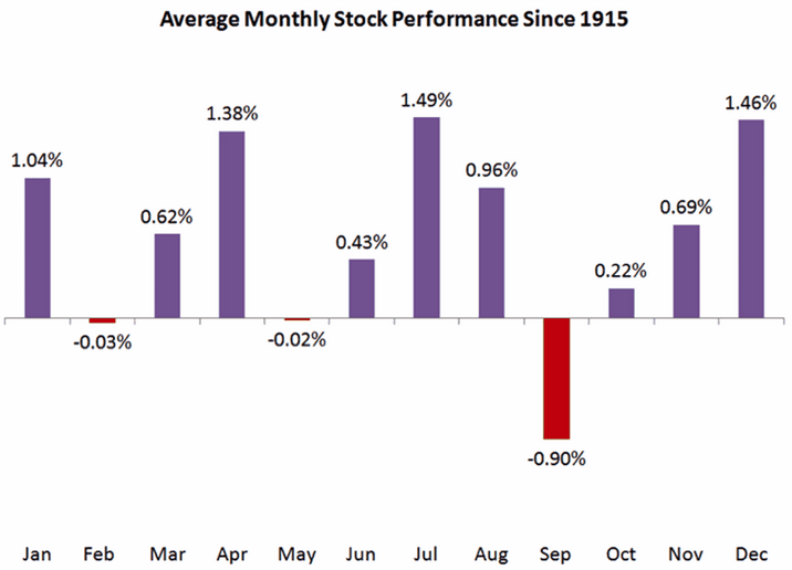 1. Septiembre es el mes del año que realmente importa. En cuanto a los datos sobre el Dow Jones Industrial Average desde 1896, septiembre ha sido históricamente el peor mes del año para las acciones, con un consistente y estadísticamente significativo sesgo negativo.