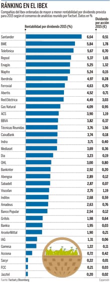 A pesar de no repartir tantos millones, empresas como Ferrovial, Abertis, Mapfre o Enagás también destacan por rentabilidad. La primera ofrece un 2,7%, mientras el rendimiento que pagan las otras tres ronda el 2,1%. Los expertos esperan nuevas mejoras de dividendo en Enagás y Mapfre (ver apoyo), mientras que no atisban otra subida en Ferrovial tras el incremento que llevó a cabo en el último pago abonado.